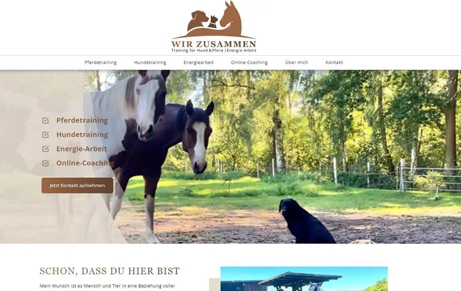 Wir zusammen – so lautet das Motto bei Heidis Arbeit mit Tieren und deren Klienten. Und so könnte auch die gemeinsame Zusammenarbeit mit der sympathischen Hunde- und Pferdetrainerin bezeichnet werden. In einem rund einstündigen Gespräch sind wir die gewünschten Texte und Bilder durchgegangen, haben eine Farb- und Schriftwelt festgelegt und zusätzlich ein Logo nach Ihren Vorstellungen mit Shutterstock-Grafik erstellt. Danach habe ich losgelegt und konnte ihr heute das fertige Ergebnis präsentieren, das Ihren Geschmack voll getroffen hat. Modern, leicht und übersichtlich. Das Beste: Der OnePager ist in weniger als 12 Stunden auf Avada-Basis entstanden. Wenn du also auf der Suche nach einer kleinen, aber feinen und vor allem 100% individuellen Webseite bist, melde dich gern bei mir. Hier geht´s zu Heidi’s Webseite: https://wir-zusammen-heidi.de